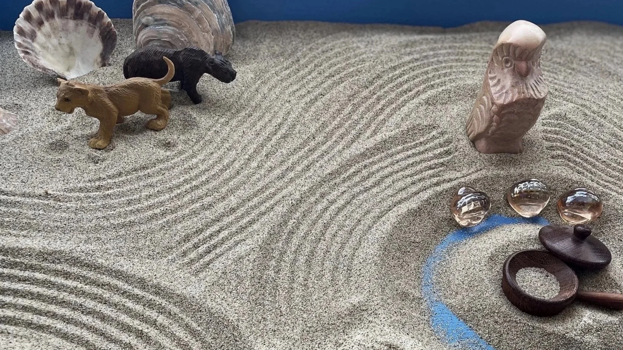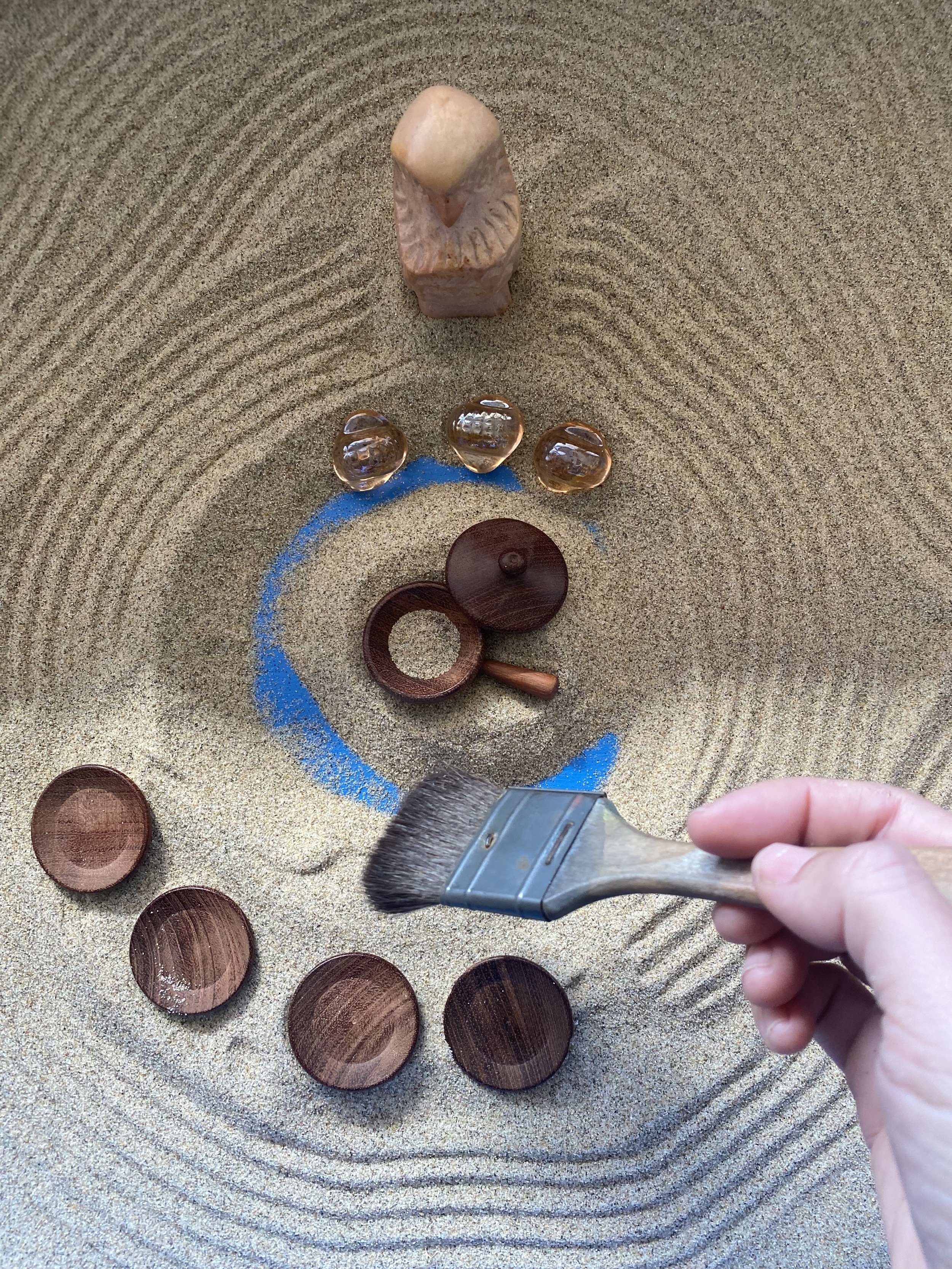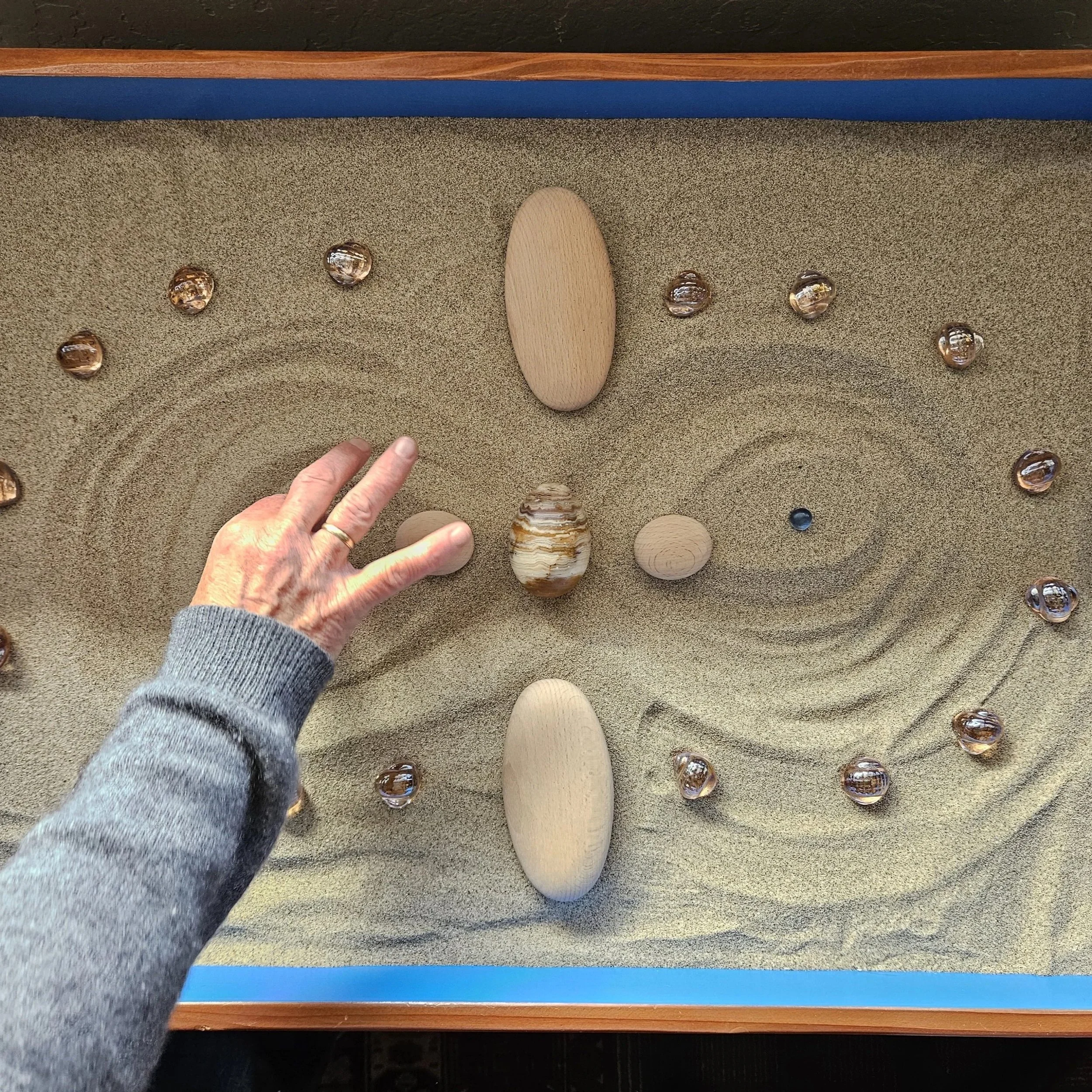 Low-key therapy technology (e.g., sand and small toys) can help. Creating a symbolic picture of the soul happens in the sand, but also the mind and the body. Arranging the elements of nature and figures in the sand can be deeply anchoring and surprisingly effective at remembering your true nature.